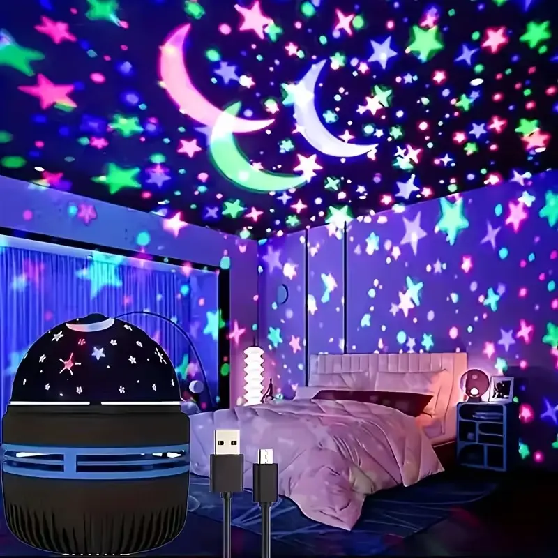 Proyecta figuras y estrellas en movimiento que convierten cualquier espacio en un ambiente único, perfecto para dormitorios, cuartos infantiles o momentos de relax.